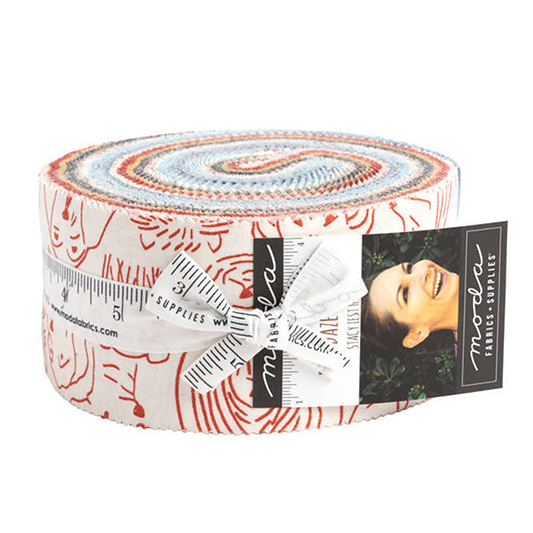 A Moda Jelly Roll includes 40 x 2 1/2 inch, width of fabric strips (WOF=42 inches), all cut with a pinked edge, ready to sew together. Many jelly rolls have 40 unique prints, allowing you to make a project with a scrappy but with coordinating colours. Occasionally, when the range has fewer than 40 fabrics there will be a few duplicated prints.