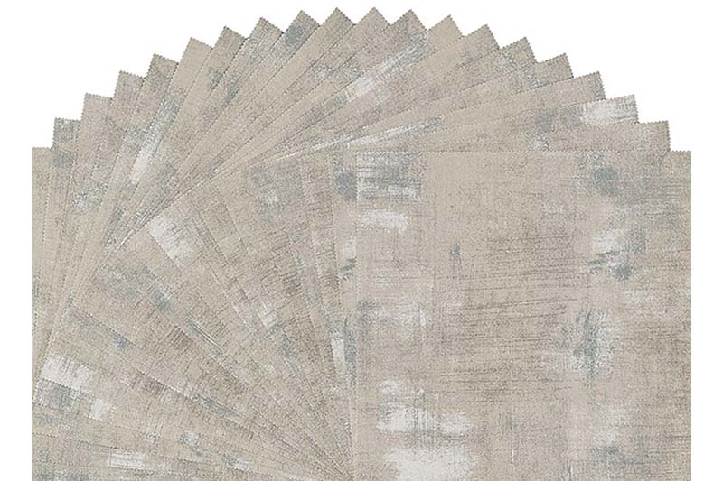 This Junior Layer Cake is Moda Grunge In Gris: colour #30150-278 Gris is a mid grey colour perfect for modern projects. Grunge is a layered print imitating layers of paint on a wall. In this colourway you fill find several tints and shades of grey printed over the base colour grey making it a solid but not solid, there’s a little interest caused by the brushstrokes there.