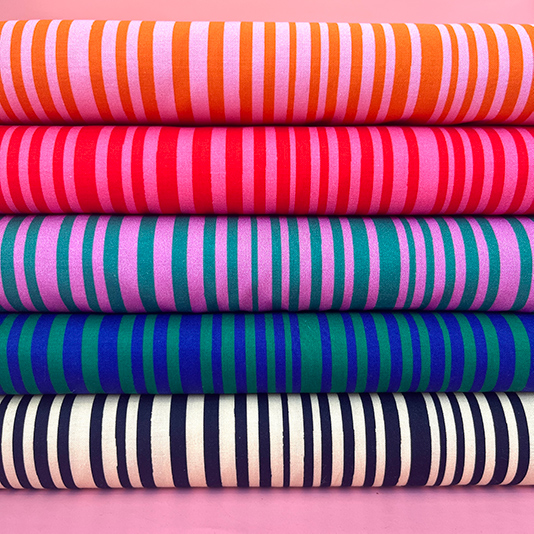 Parade is the amazing wideback designed by Annabel Wrigley as part of her Kaleidoscope collection for Windham Fabrics.    Annabel drew inspiration from her own original quilts in designing Parade. In addition to this wideback we have all of the mini-stripe colour-ways available off the bolt.  Annabel is an Australian fabric designer, textile artist, author and modern quilt maker living in Virginia, USA.  Her textile artworks and quilts can be explored via her instagram profile @littlepincushionstudio