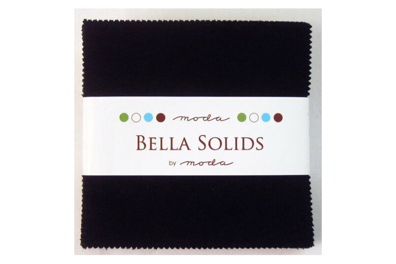 This is a pack of 5 inch charm squares ALL cut from Moda’s Bella Solid black fabric. Bella Colour #99. Bella Solids are Moda’s range of solid fabrics. A Moda charm pack includes 42 x 5 inch squares, all cut with a pinked edge, ready to sew together. So you are getting 42 x exactly the same 5 inch black squares.
