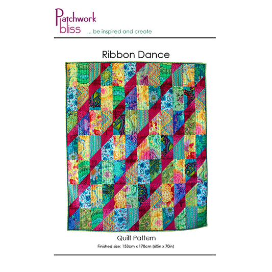 The pattern includes detailed step-by-step instructions. All Patchwork Bliss patterns are in inches and use a 1/4 inch seam allowance. Fabric quantities are in both metres and yards.  Ribbon Dance quilt pattern also makes a great stash buster.
