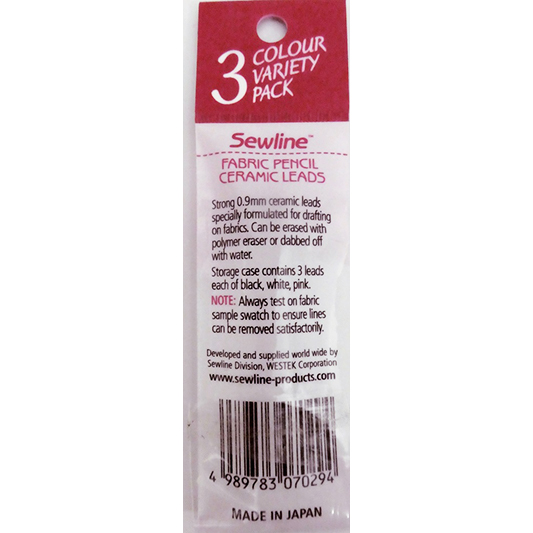 This listing is for a refill Variety pack of Ceramic Lead suitable for use with the Sewline Fabric Pencil, Trio and Trio Colors.