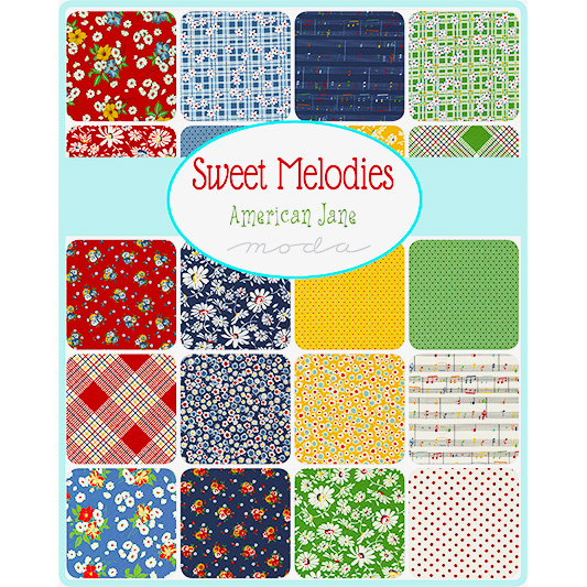 Thanks to American Jane’s trademark vibrant colours and whimsical retro prints, sewing with Sweet Melodies will put a smile on your face and a song in your heart.  Sweet Melodies is a musical little group with print and pattern variety and a primary happy spring colour spectrum to be entertaining for endless amounts of fun.  There are daisies and dots, playful flowers and plaids and the best of all there are some note lines singing a sweet melody.